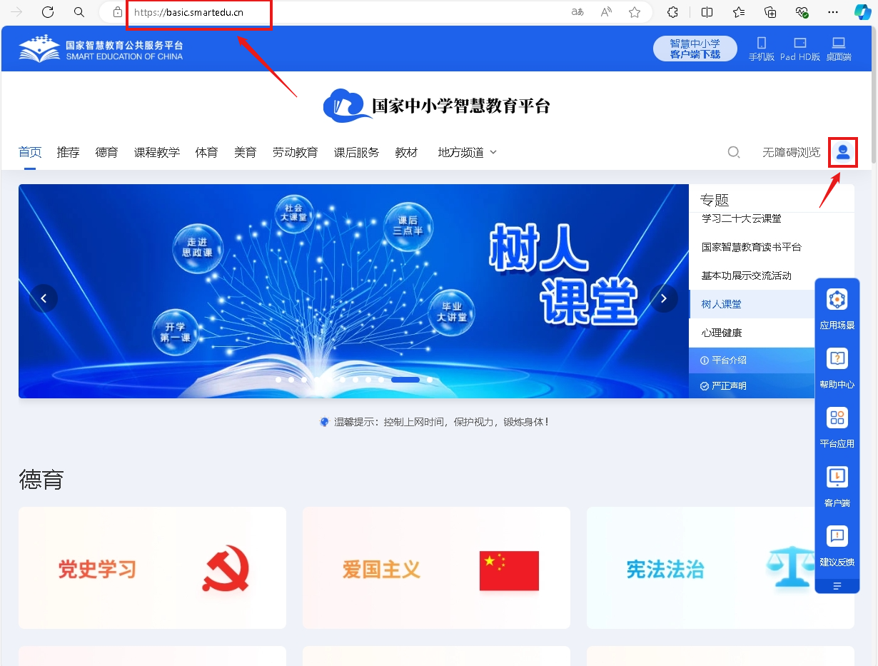 打开浏览器,登录中国中小学智慧教育平台并登录/注册账户。
