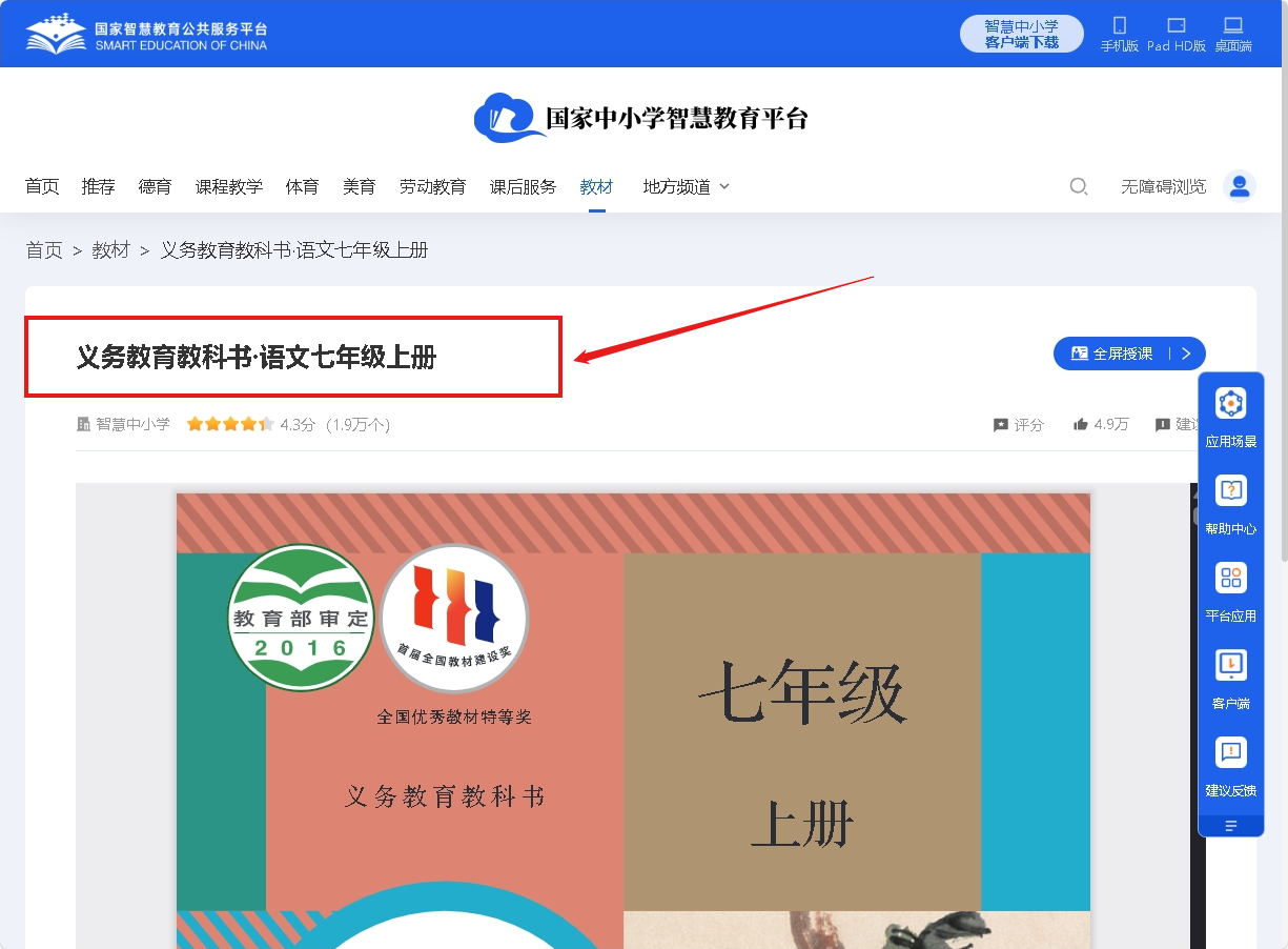 进入教材页面,选择需要下载的教材。