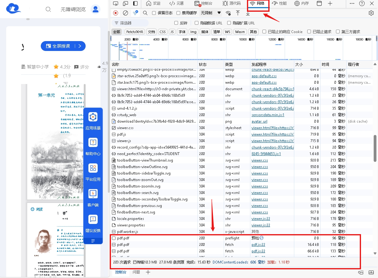 按F12键或右键选择“检查”进入开发者页面,选择“网络”标签页。上下滑动页面或者刷新页面,右键列表中任意pdf.pdf文件,选择“在新的标签页中打开”。