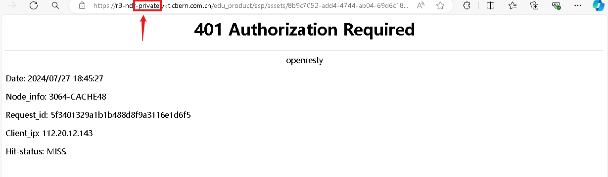 在新的标签页中查看,此时显示401 Authorization Required说明操作正确。在URL地址栏中删去二级域名前的“-private”。